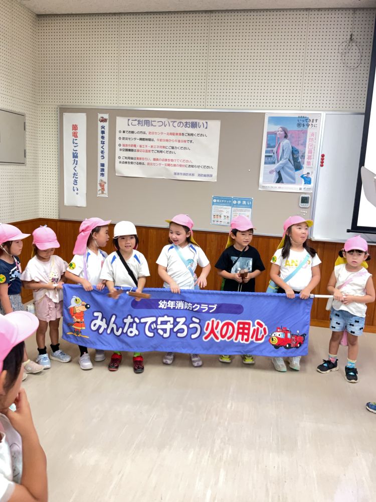 5歳児が瑞浪市消防署を訪問し、消防署見学をさせていただきました。今年度も5歳児は「幼年消防クラブ」の一員として活動し、火事を防ぐ大切さを学び、地域の皆さんにも火災予防について呼びかける取り組みに参加していきます。