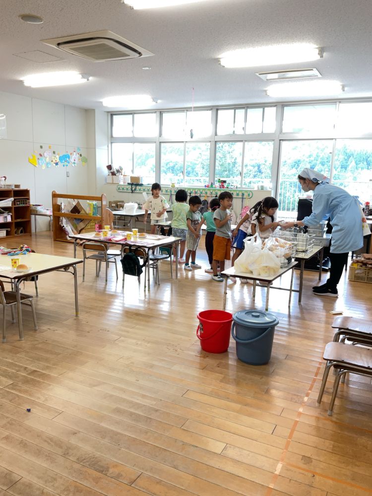 「長い針が3になったらご飯が届くから、11までの間に食べに来てね」と声を と掛けると、「やった!」「わかった!」と元気いっぱいに返事をしてくれた子ども達。 「僕は、まだ遊びたいから後にしよ。」「私は先に食べようかな。」とそれぞれのタイミングで、給食の準備をする姿がありました。